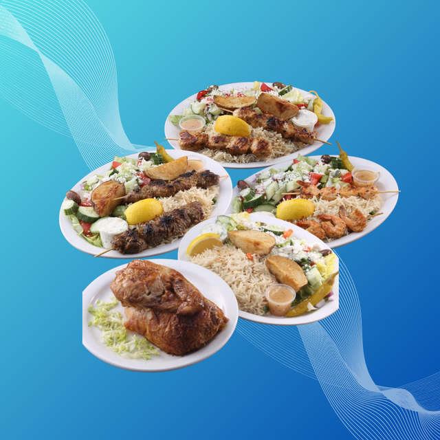 Any 5 souvlaki platters and 5 pieces baklavas