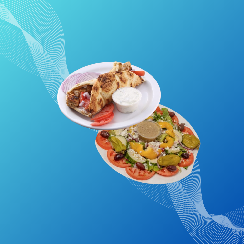 1 piece house of Greek vegetarian platter with any single pita sandwich platter, 2 pieces baklavas